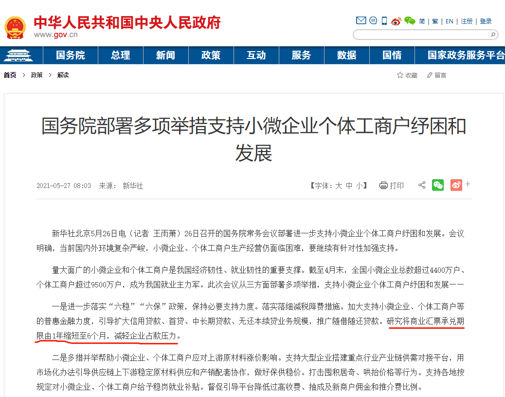 此次国务院常务会议,对中小企业来说,确实是一大利好!虽说不能全面取消商业汇票承兑,但是大大缩短了承兑的期限。